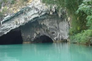 百鸟岩是个地下溶洞,长约一千五百米,有水上芦笛岩之称。每当朝霞初开或夕阳西斜的时候,成千上万的岩燕飞出洞口,贴水嬉戏,景象蔚为壮观,因此得名。乘小船前往洞中,船桨轻轻的摇动,墨绿色的河水泛出一圈圈的涟漪,把手轻轻放入水中,河水温润柔和,两岸竹影婆娑,人如在画中行驶。 船驶入洞中,如同进入了世外桃源